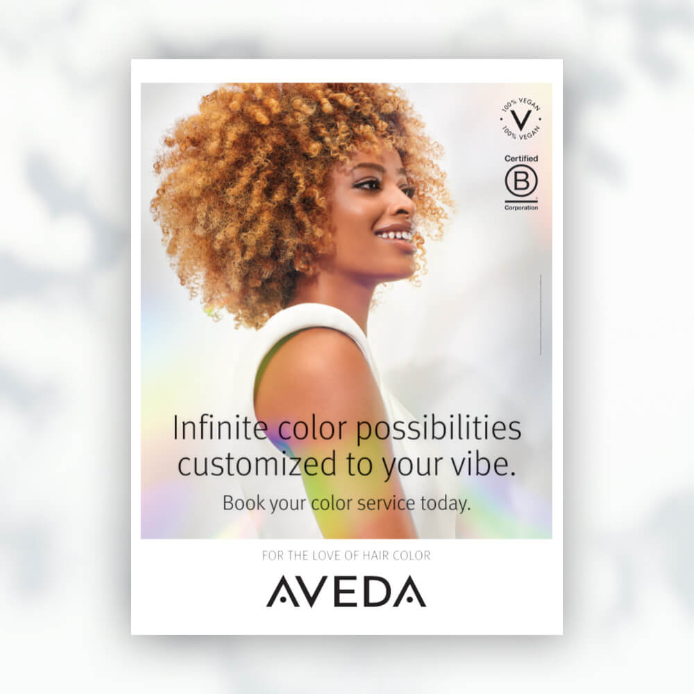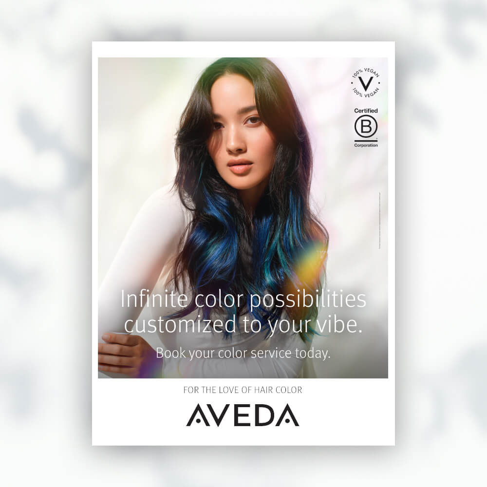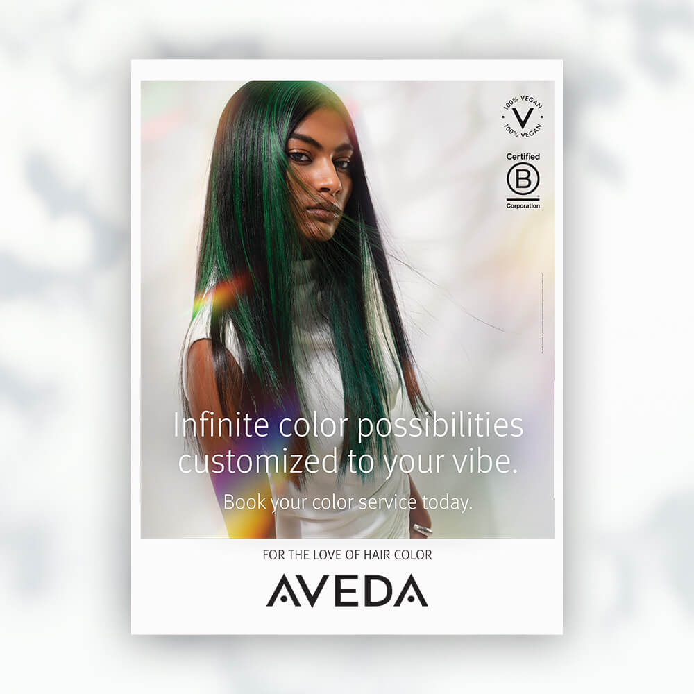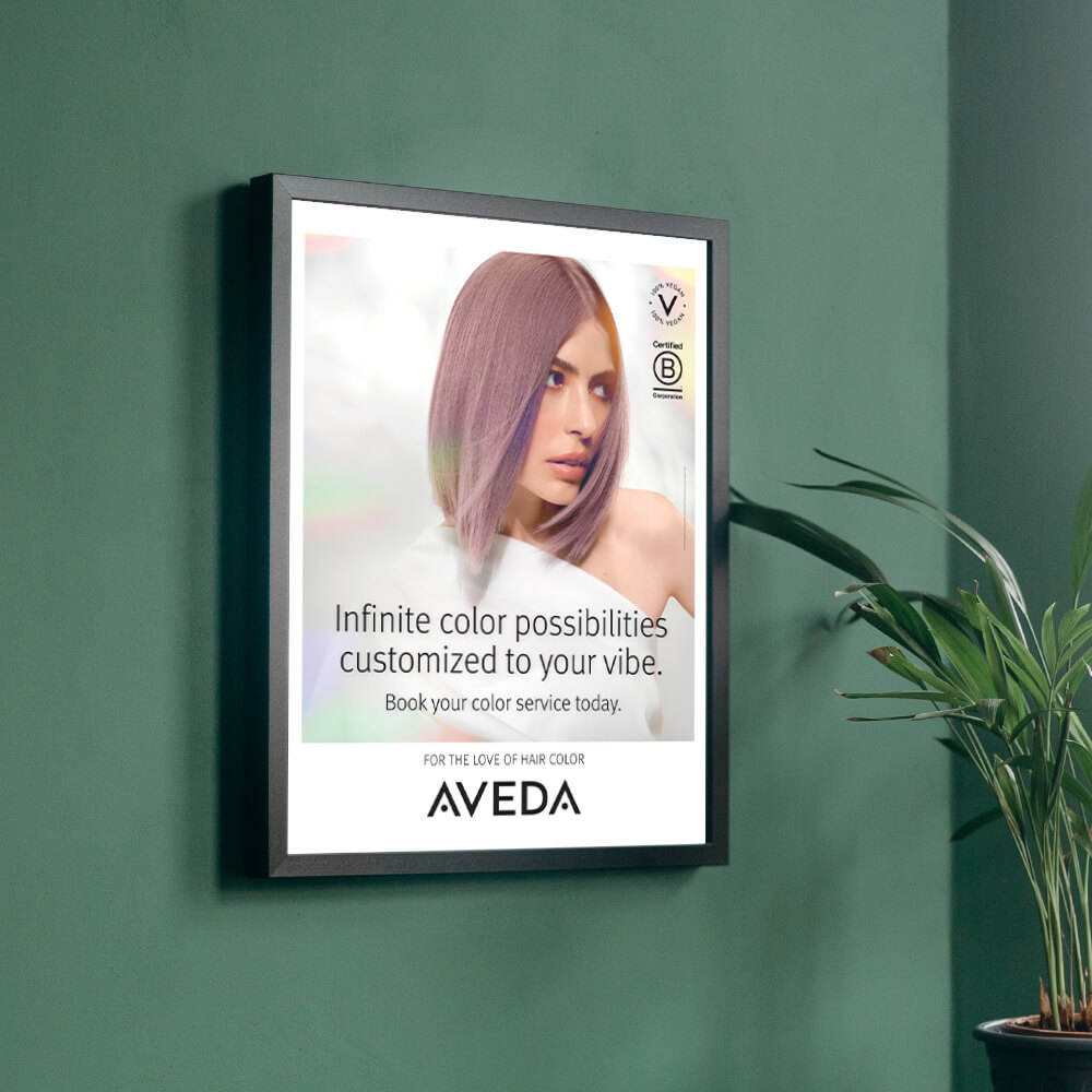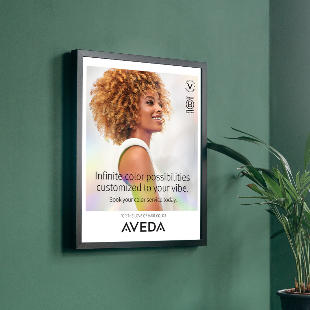 Promote Aveda hair color trends with this jumbo poster or light box for your salon.